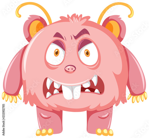Pink scary monster on white backgroud