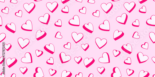 Pink seamless pattern with vibrant cute cartoon hearts. Vector hand drawn simple creative illustration heart. Valentine, love background. Design for textile, fashion, web, fabric, printing