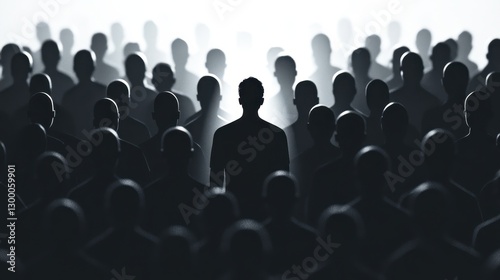 Pink silhouette of couple standing in monochrome crowd of different people,surreal unique and different concept,loneliness in society,shadow,freedom,Love,be yourself,Stand out from the crowd.