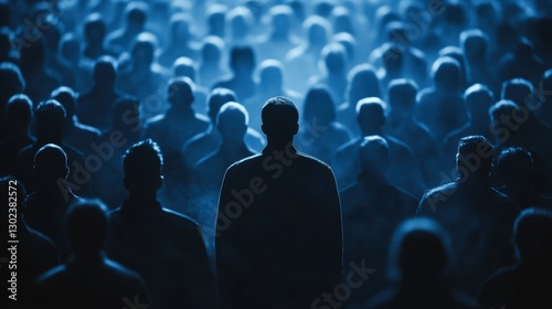 Pink silhouette of couple standing in monochrome crowd of different people,surreal unique and different concept,loneliness in society,shadow,freedom,Love,be yourself,Stand out from the crowd.