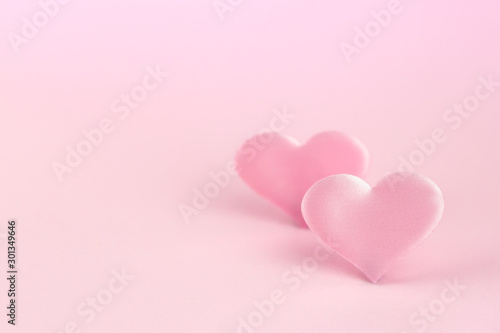 Pink silk heart on a pink background. The concept of minimalism. Place for text. Pastel colors .
