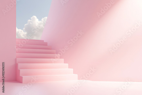 Pink staircase leading to heaven against pastel background, modern abstract concept