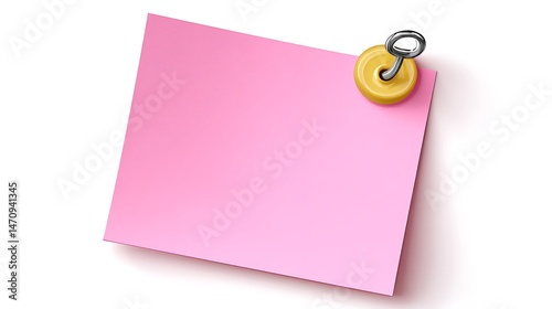 Pink Sticky Note with Blank Memo Pad, and Office Supplies.