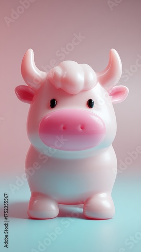 Pink Toy Cow - Adorable and Playful Figurine on a Blue Surface.