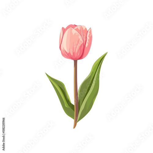 Pink Tulip Flower Vector Art with Green Stem