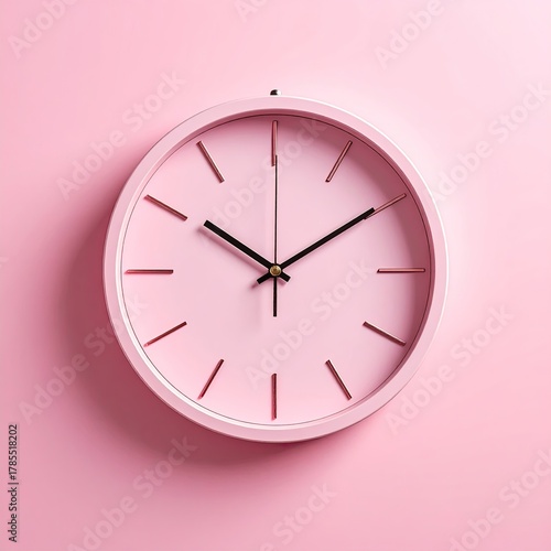 Pink wall clock, gold hands, simple modern design