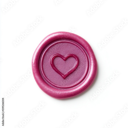 Pink Wax Seal with Heart Symbol on White Background