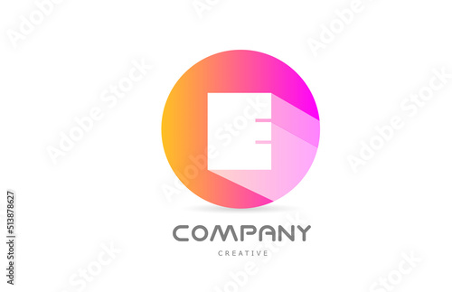 pink yellow E alphabet letter logo icon with long shadow. Creative template for business or company with circle
