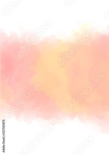 Pink-yellow watercolor background. Delicate peach color. Watercolor background for romantic, wedding card, invitation.