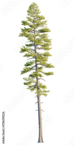 Pinus ponderosa tree, front view, cutout, transparent, isolate, Tall evergreen pine tree with lush green needles, perfect for nature scenes