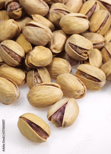 Pistachio Nuts, pistacia vera, Dry Fruits against White Background