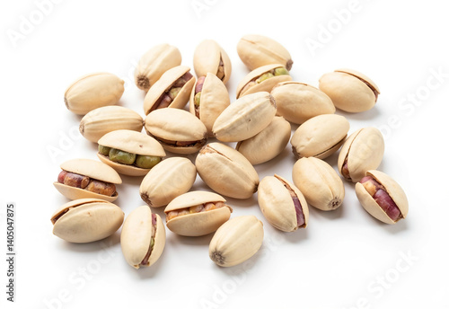Pistachio Nuts Shelled Unshelled Scattered white Background,Flying pistachios