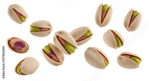Pistachios Falling on Transparent Background, Delicious Nuts with Green Kernels, Healthy Snack, High-Resolution Image