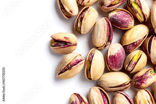 Pistachios on White, Pile of Delicious Roasted and Salted Nuts Close Up View