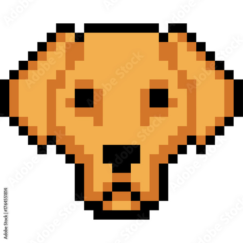 Pixel Art Golden Retriever Dog Face Icon with Orange Fur and Black Eyes on a Transparent Background Minimalist Retro Style