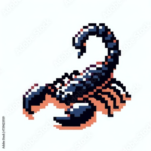 Pixel art of a scorpion with a white background, in the style of early 90s video game console, cute 8 bit animal illustration