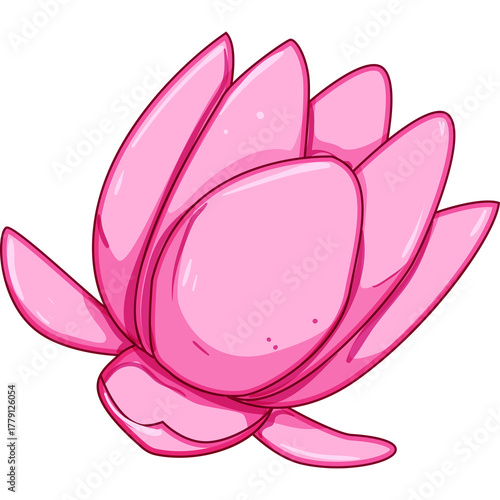 Pixel Art Pink Lotus Flower Icon With Transparent Background and Subtle Shading