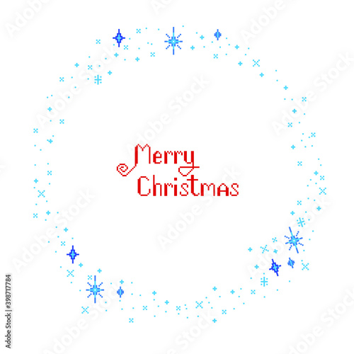 Pixel art style. Merry Christmas and Happy New Year greeting card. Perfect for personalized holiday greeting cards, Christmas party invitations and holiday designs.