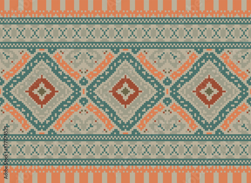 Pixel Indigenous geometry style pattern. seamless ethnic pattern concept. Design for indigenous, fabric, boho, carpet, ikat, tribal, batik, background