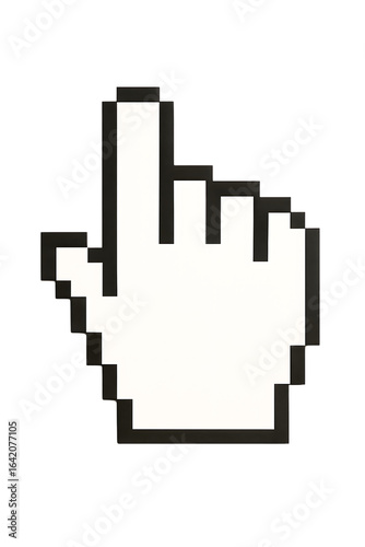 Pixelated computer mouse cursor hand icon pointing upwards isolated on transparent background