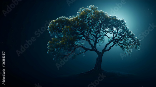 Pixelated Glowing Tree In Dark Night