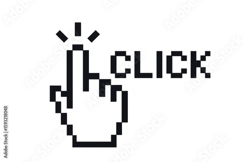 Pixelated hand cursor clicking with light effect, internet concept with transparent background