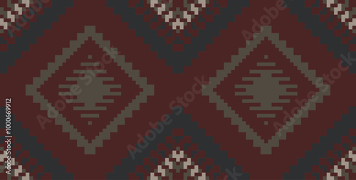 Pixelated Traditional Kimono Sewing Patternfolk Embroidery, Aztec Geometric Ornament Print. Design for Carpet, Wallpaper, Clothing, Wrapping, Fabric