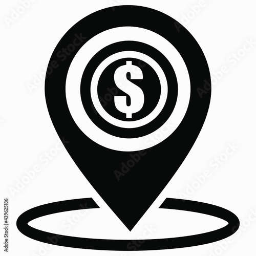 Place of settlement in dollars. GPS sales in dollars. Exchange office for dollars. Vector icon.