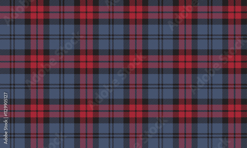 Plaid fabric pattern, blue, black, red, modern seamless cross lines pattern for textiles, and for designing clothes, skirts or decorative fabrics. Vector illustration.