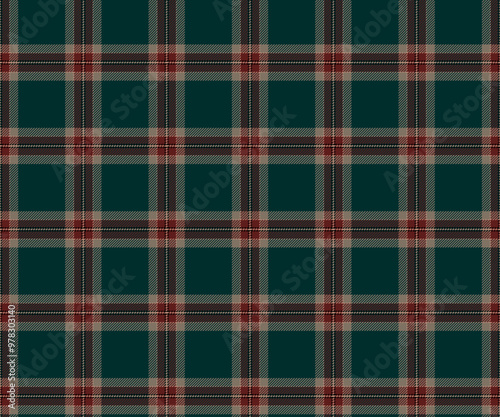 Plaid fabric pattern, green, red, cream, seamless for textile and design clothes skirt pants apron tablecloth blanket or decoration. Vector illustration.
