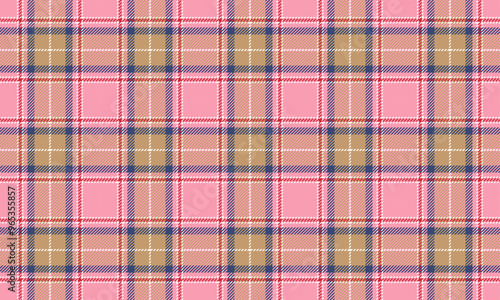 Plaid fabric pattern, pink, yellow, blue, red, seamless for textile and design clothes skirt pants apron tablecloth blanket or decoration. Vector illustration.