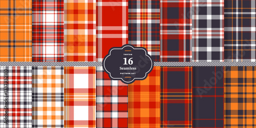 Plaid pattern seamless. Bright Canary & Dark Slate Tartan Textile Design. Set of 16