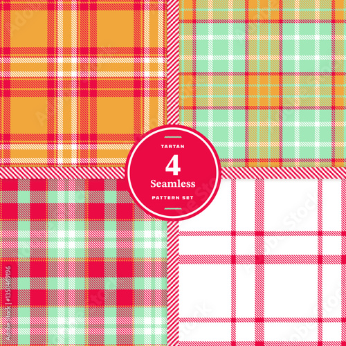 Plaid pattern seamless. Deep Burgundy & Ebony Black Tartan Fabric Design. Set of 4
