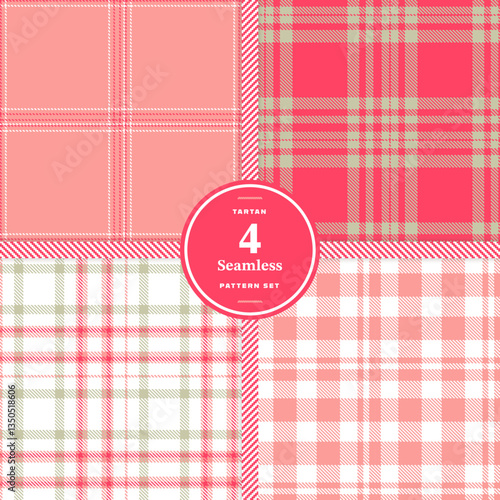 Plaid pattern seamless. Pastel Buttercream & Dark Slate Tartan Fabric Design. Set of 4