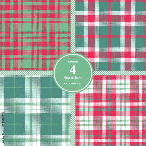 Plaid pattern seamless. Soft Vanilla & Dark Slate Tartan Fabric Design. Set of 4