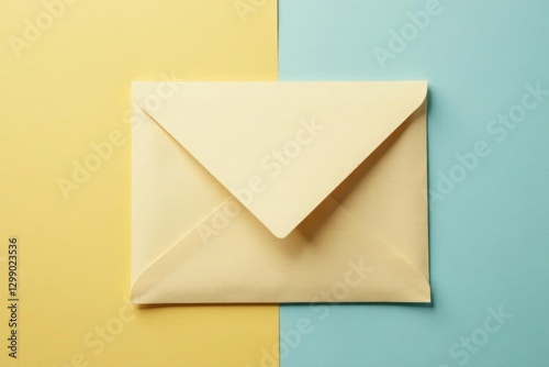 Plain beige envelope on matching surface, minimal composition, image, photography, graphic