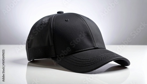 Plain black baseball hat isolated on a clean white background. Classic sports cap mockup for branding and design.