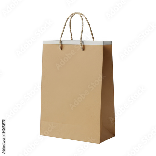Plain brown paper shopping bag with white handles isolated on black transparent background
