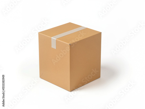 Plain cardboard box with tape on white background isolated white background