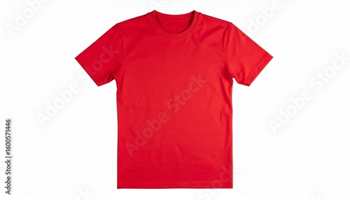 Plain red short-sleeve t-shirt with round neckline, isolated on transparent background for apparel mockup