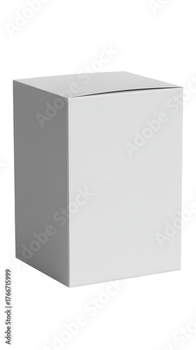 Plain white cardboard box standing upright isolated on white background