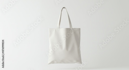 Plain White Cotton Tote Bag Mockup for Shopping with Fabric Texture and Empty Design Template Against a Light Background