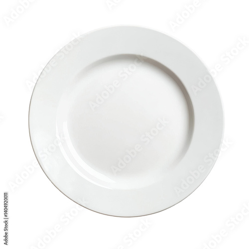 Plain white plate viewed from above on a clean Transparent background for minimalistic dining presentation, top view white plate isolated on PNG background