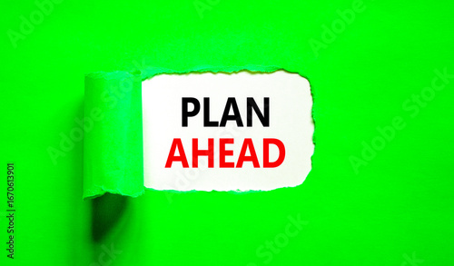 Plan ahead symbol. Concept word Plan ahead on beautiful white paper. Beautiful green paper background. Business plan ahead concept. Copy space.