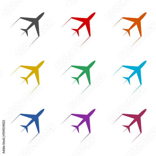 Plane icon isolated on white background. Set icons colorful