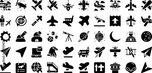 Plane Icon Set Isolated Silhouette Solid Icons With Airplane, Icon, Symbol, Aircraft, Plane, Vector, Travel Infographic Simple Vector Illustration