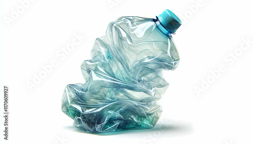 PLANET A crumpled red plastic bottle with a glossy surface and the cap sealed tightly, compressed and isola2