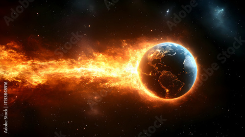 Planet Earth Burning in Space: A Cosmic Firestorm