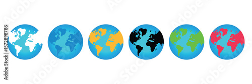 Planet earth colorful continents map globe icons vector illustration of world geography global environment symbol collection set.