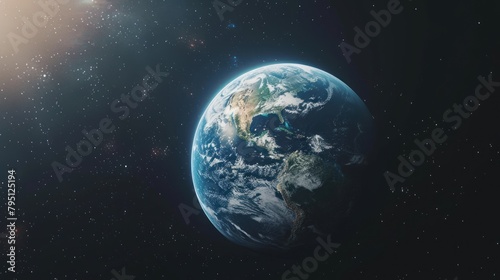 Planet Earth half night and half day with city lights and clouds in space, ai generated